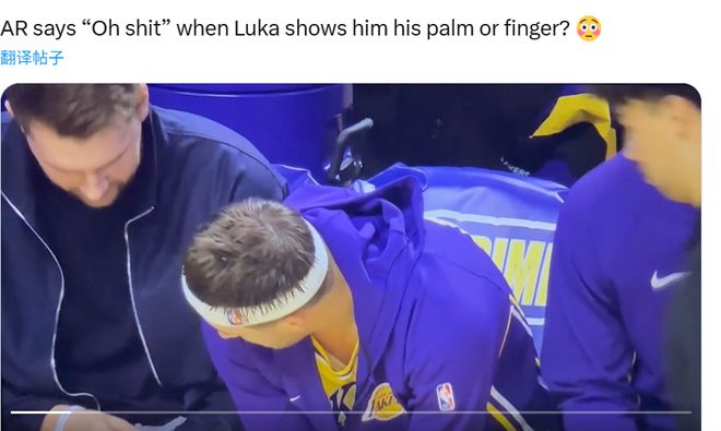東契奇因為左手手指扭傷和小腿挫傷缺席本場比賽,在替補席上東契奇給里夫斯展示他受傷的手指。